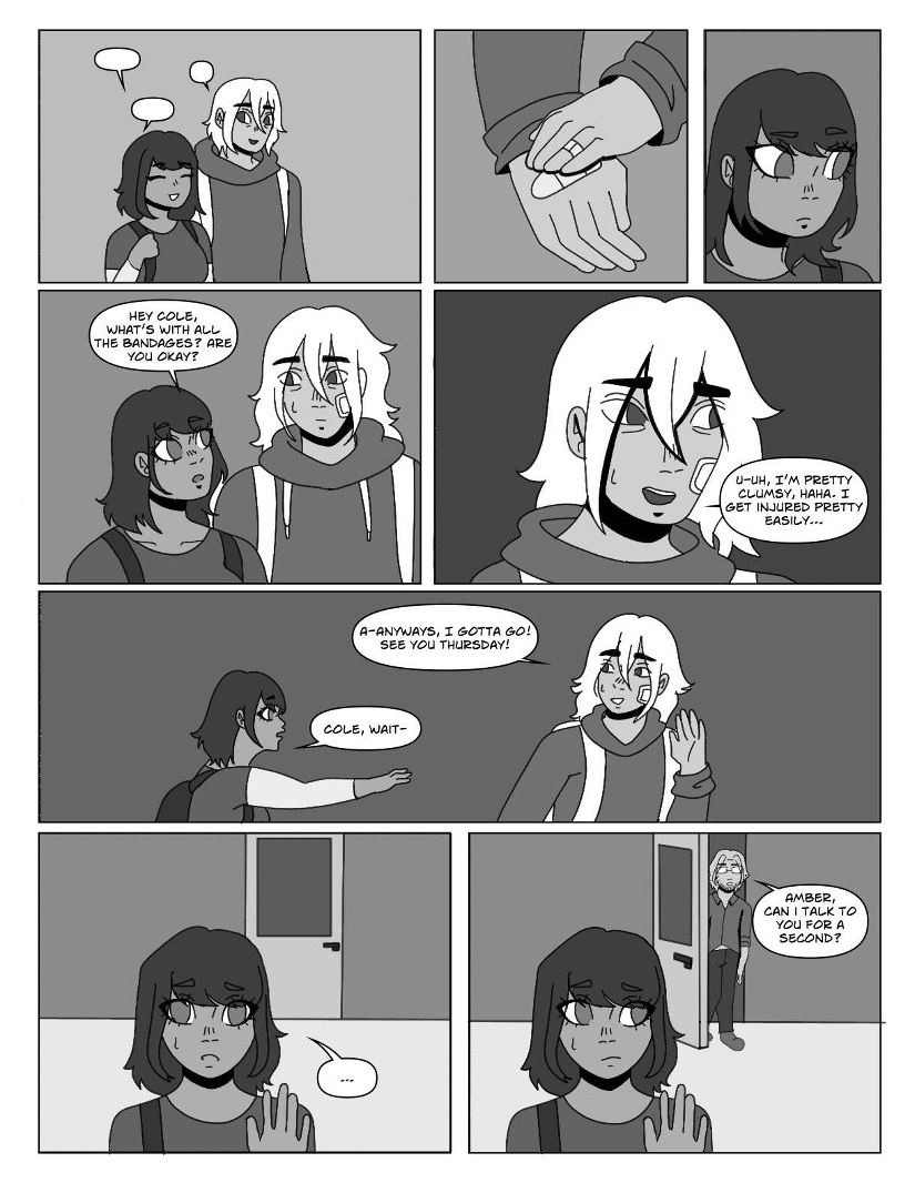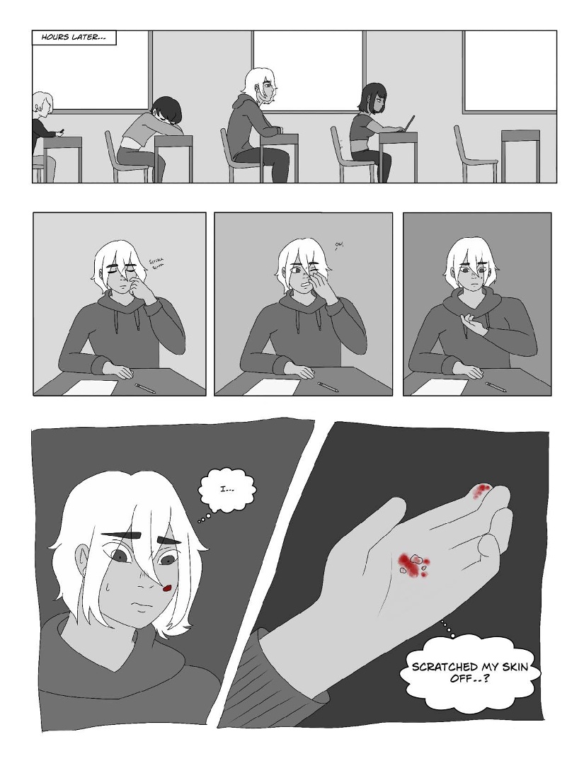 Scratch is a 12 page comic I developed over the course of 5 months for my Illustration Capstone Class. A young man named Cole finds that his skin is starting to fall off. He tries to hide it from anyone, but his friend and classmate, Amber, quickly notices that something's wrong with him. I developed this comic in Procreate and Comic Draw all on my Ipad.